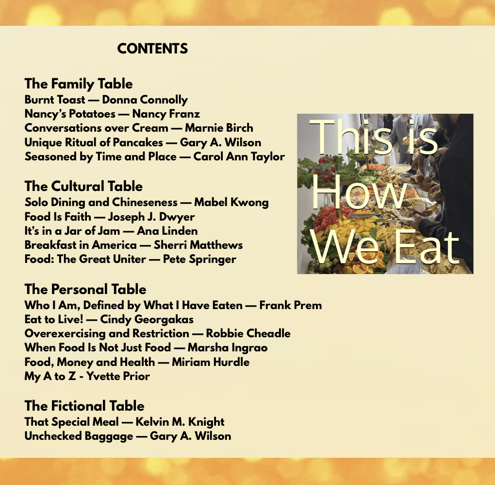 This Is How We Eat (2026) brings together 17 authors who explore how food shapes memory, identity, emotion, culture, and connection. More than a collection of food stories, the book considers how eating influences community, belief, and becoming. It invites readers to reflect on their own tables — the meals that formed them, the flavors that anchored them, the rituals that sustained them — and offers a virtual slice of cake and a place at a longer table.