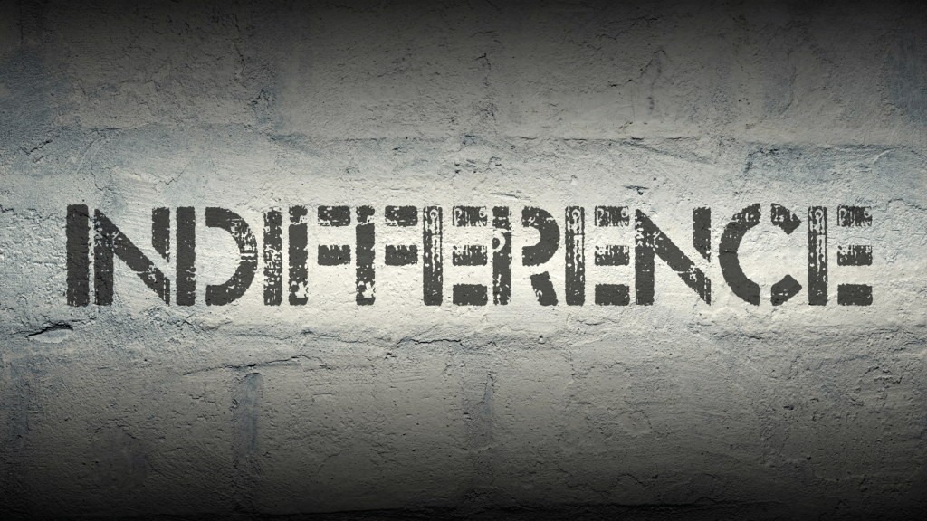 Indifference. It renders the human spirit paralyzed or dead, but indifference is very much alive and well!