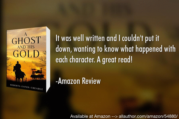 The above three advertisements’ for A Ghost and His Gold set out above are a GIF that I made using a tool provided by AllAuthor, a picture advertisement provided by AllAuthor, and my own advertisement incorporating a quote from the the book.