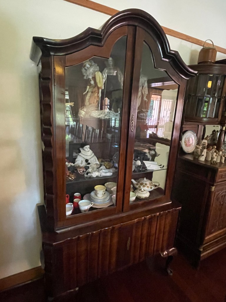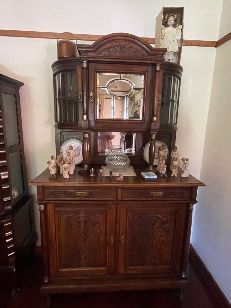 Lovely home and furnishings. I have two older pieces both of Cherry Mahogany. One a Buffet or Cradenza, the other a one piece china hutch. Each bought seperately (no history really). I’d have a house full of antiques if I could.