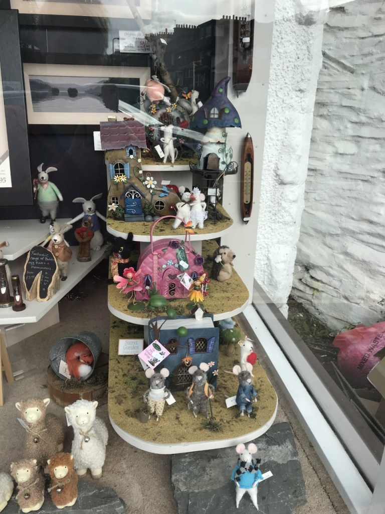 I am leaving you with this picture of some little fantasy houses I took through the window of a shop in the Lake’s District in the UK. I thought they were adorable and love the tiny doors and windows.