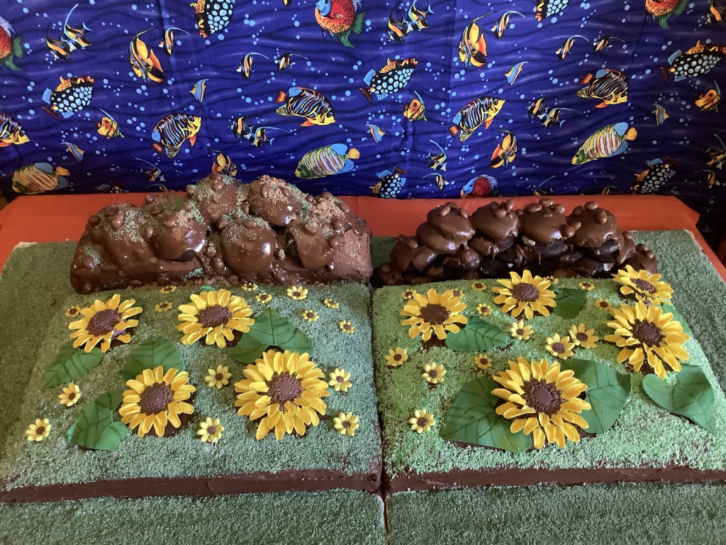 I enjoyed listen to you read and learning more about sunflowers. The cake is amazing! I like the animal photos, especially the cape buffalo who looks almost three dimensional.
