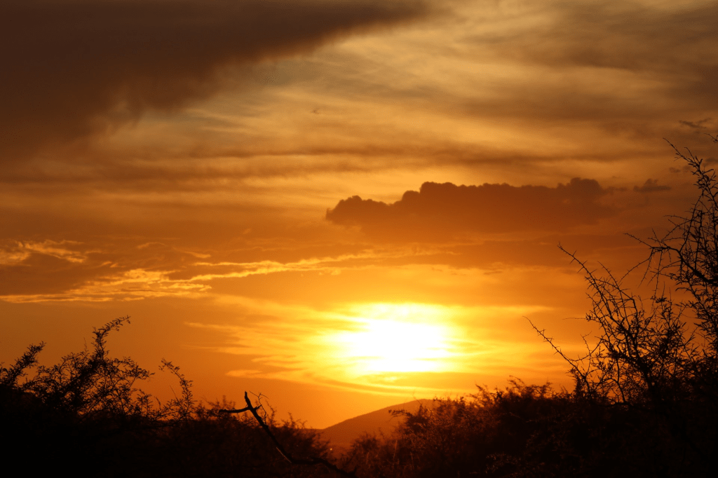 I think your poem fits the puente form very well. “Perfection works on a sliding scale” is a killer of a last line! That sunset is gorgeous. I’ve been meaning to ask, do you encounter a lot of insects on your trips?
