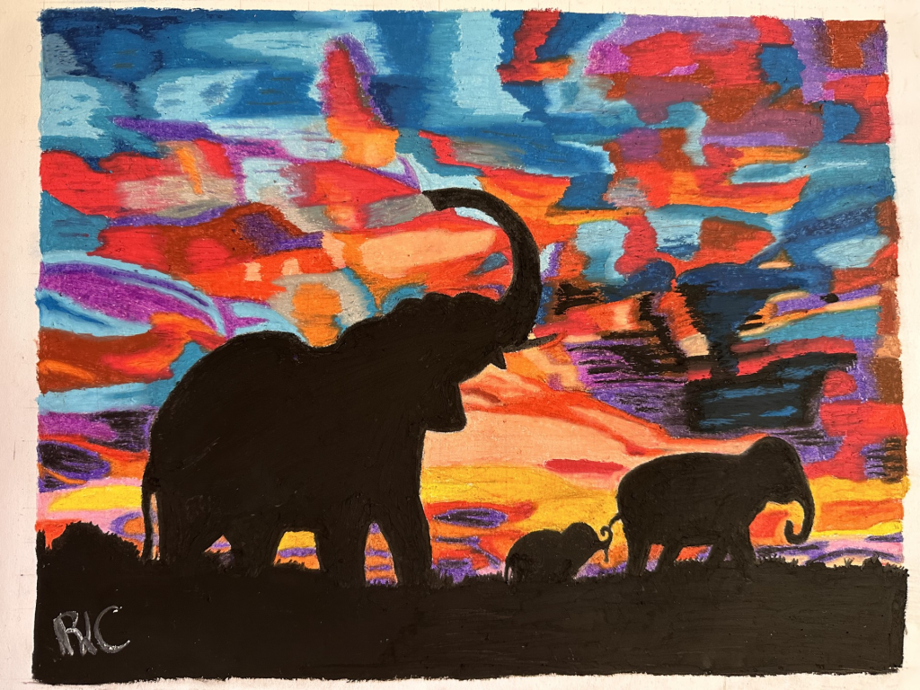 Lovely photos and gorgeous art. I love the ones with the elephants in silhouette, but also your son’s artwork at the end. It’s very potent imagery that show how regal elephants are.