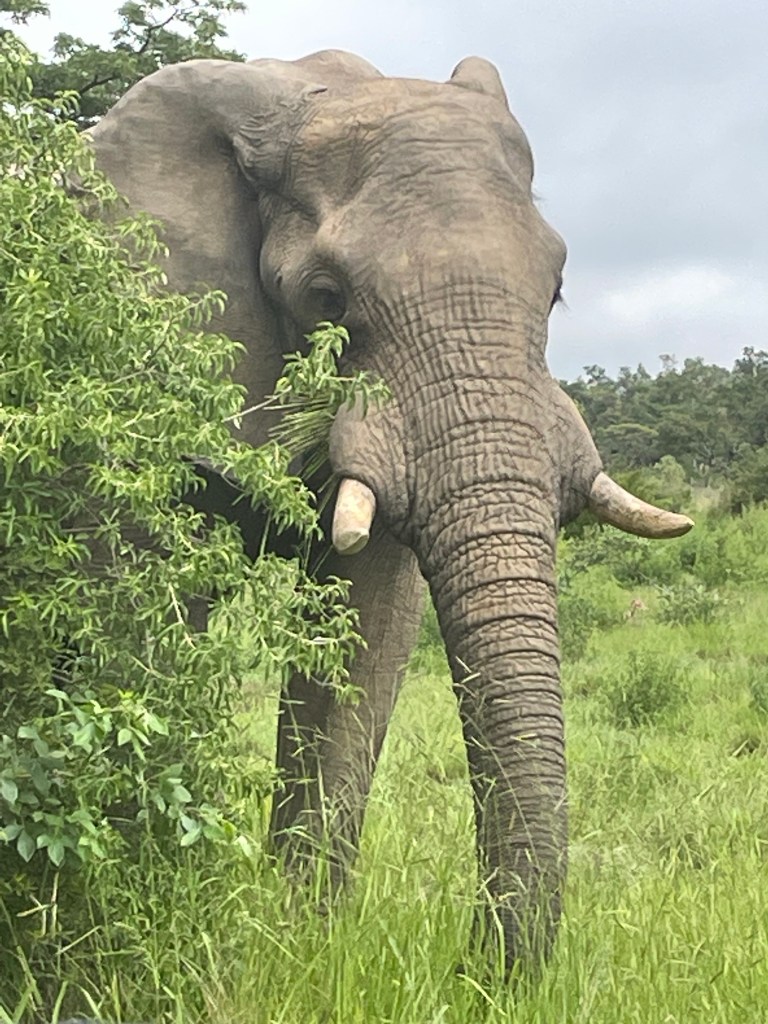Picture caption: This is in the Waterberg. An elephant peeping behind a bush. He was a very big guy