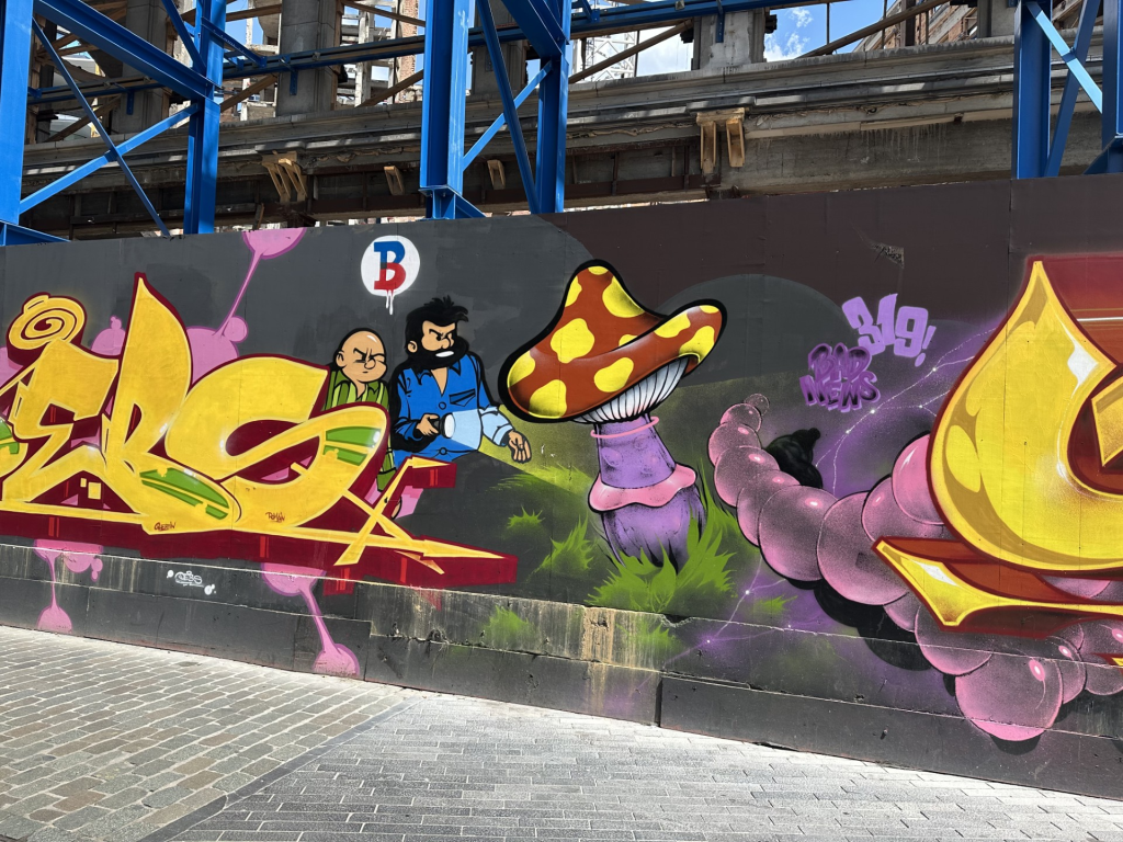 We like your photos of the street art. Most of these murals have the same style. They remind us of comics.