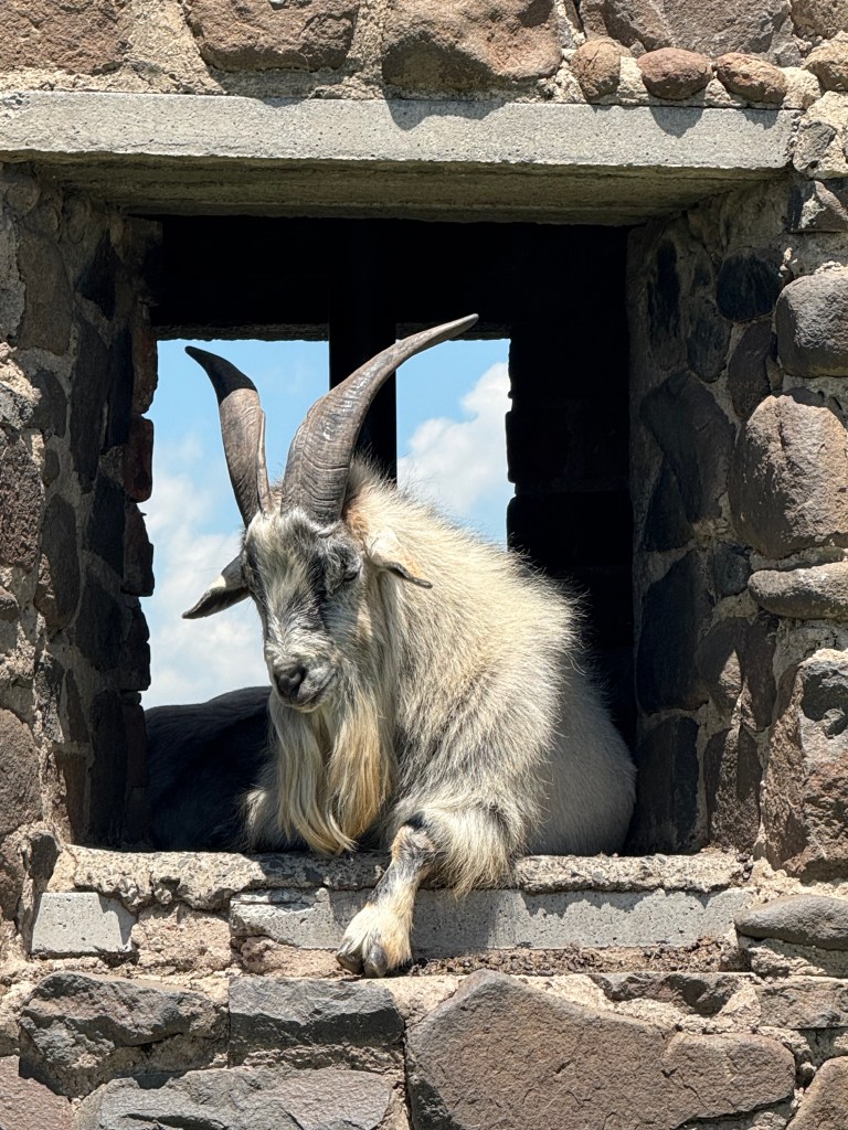 This is the mountain goat we saw in Ermelo. What I took for a window is actually a doorway for him to get in and out of this shady enclosure.