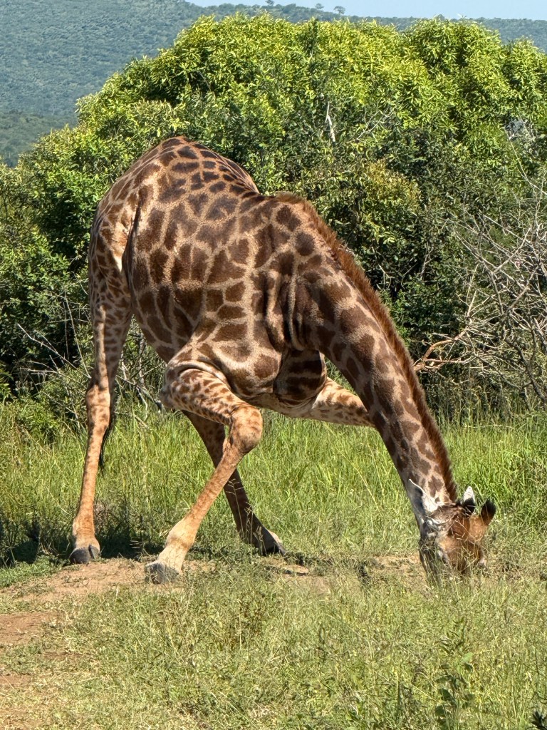 The gallery includes a giraffe bending down to drink and bats on the roof of the entrance to the Huhluwe-iMfolozi National Park.