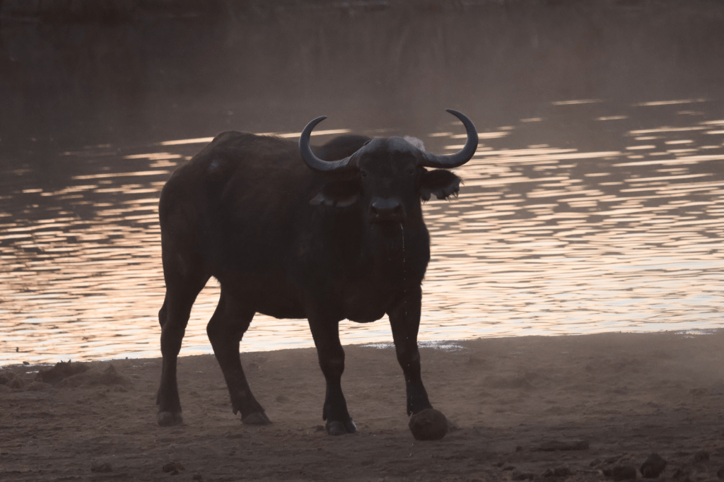 Picture caption: a very muddy Cape buffalo in the early morningPicture caption: I love this picture of the muddy buffalo in the morning light. The reflection off his muddy torso is amazing. Picture caption: sunrise in the bushveld