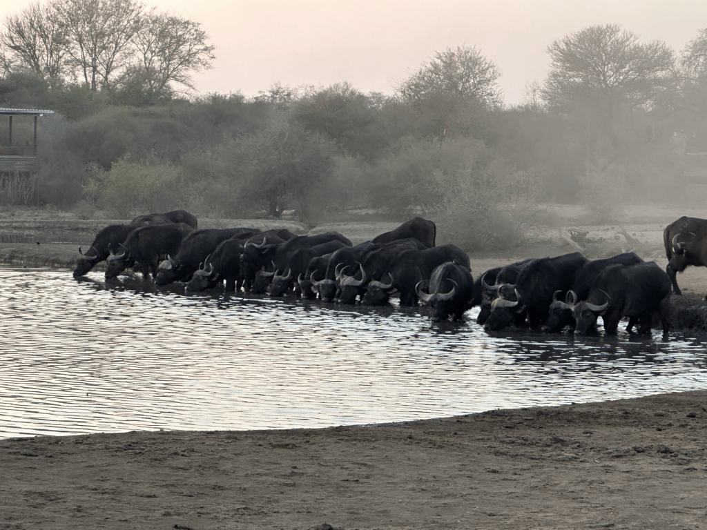 Picture caption: Grey heron at dawnPicture caption: Buffalo at dawn at the watering holePicture caption: watering hole at dawnPicture caption: grey heron on the lake at dawnPicture caption: Giraffe mother and baby at dawnPicture caption: A herd of buffalo at dawn