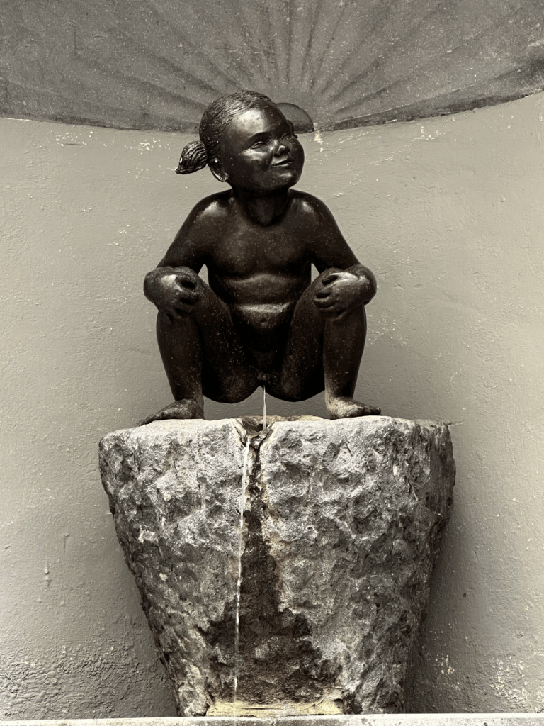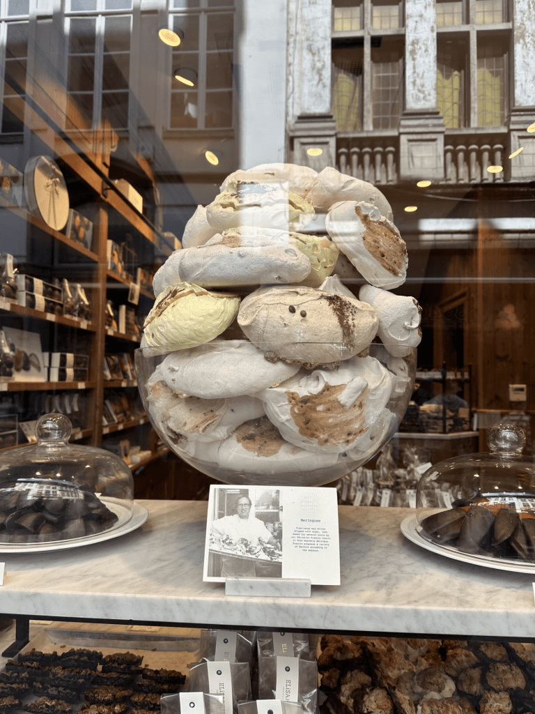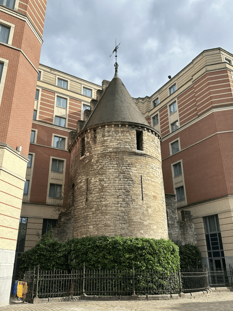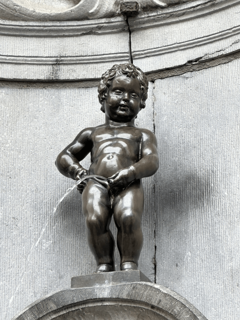 Picture caption: Jeanneke Pis statue in BrusselsPicture caption: Black Tower in Brussels. I could see this historical landmark from my hotel room.Picture caption: Giant meringues in a shop window.