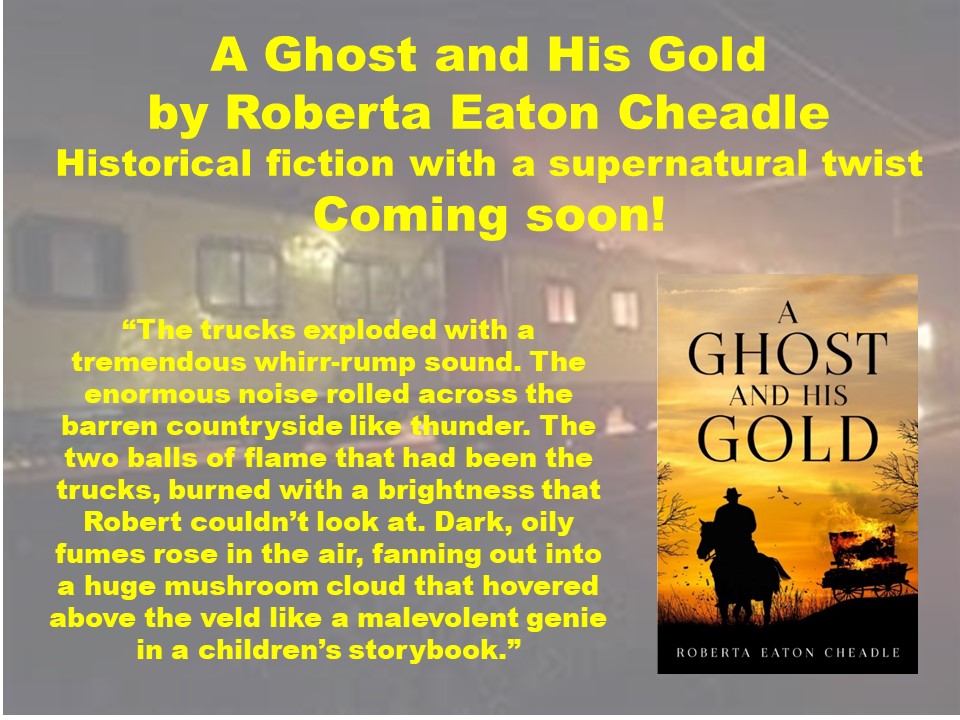 A solid setting makes or breaks a paranormal story. In Roberta Eaton Cheadle’s A Ghost and His Gold, readers are treated to a culture and locale not often written about in these tales–South Africa! The book, set in two periods separated by over one hundred years, piques your curiosity when a Ouija board appearing on a modern-day farm in Irene, South Africa catapults a few characters back to the turn of the century Boer War… that is, circa 1900 when things were quite horrific. As the title suggests, there is gold hidden somewhere, and a ghost has returned to either protect or resurrect it.