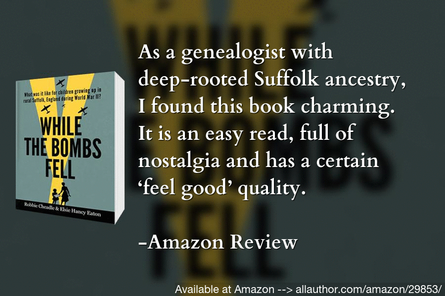 While the Bombs Fell is a fictionalised account of the life of Elsie Hancy Eaton, growing up in Bungay, Suffolk in the United Kingdom during world war 2. Elsie was just under one year old when the war started and just seven when it ended.